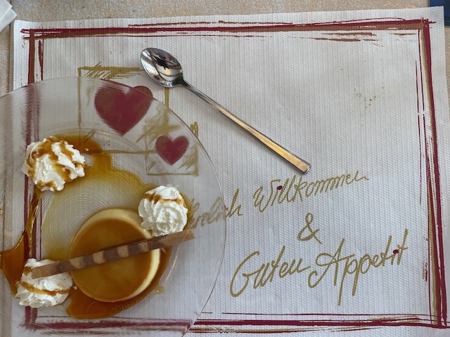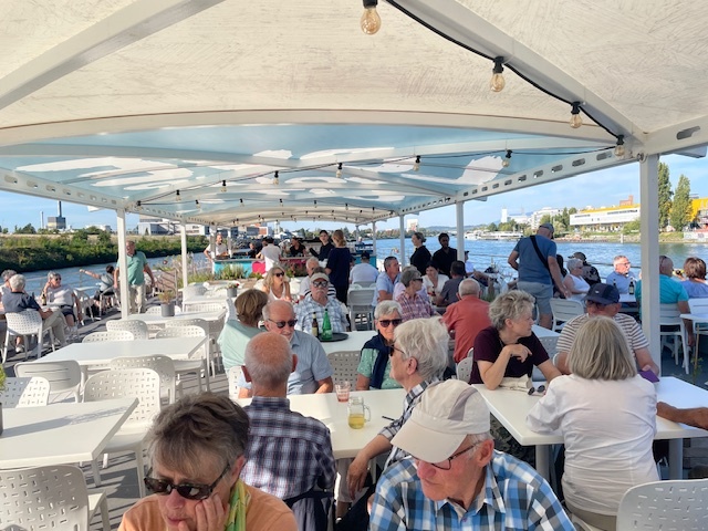 Beim anschliessenden Mittagessen im Rest. Schiff in Möhlin stärkten wir uns bei einem feinen Braten, leckerem Dessert und lebhaften Gesprächen. Danach ging die Reise weiter Richtung Stadt Basel. Spätestens jetzt zeigte sich die grosse Erfahrung unseres Chauffeurs Roli und er umkurvte geschickt jeden Stau. Nicht ganz pünktlich, aber dennoch zur rechten Zeit, bestiegen wir das Rheinschiff. Diese „Leerfahrt“ zum Beladen des Schiffs, war doch nicht so leer und neben den MTV’ler haben sich noch weitere Passagiere aufs Deck geschlichen. Nun gings einmal zum Dreiländer-Eck und zurück, danach wieder in den Car und zur Heimfahrt. Sicher und glücklich kamen wir wieder in Rothenburg an – Punktlandung.