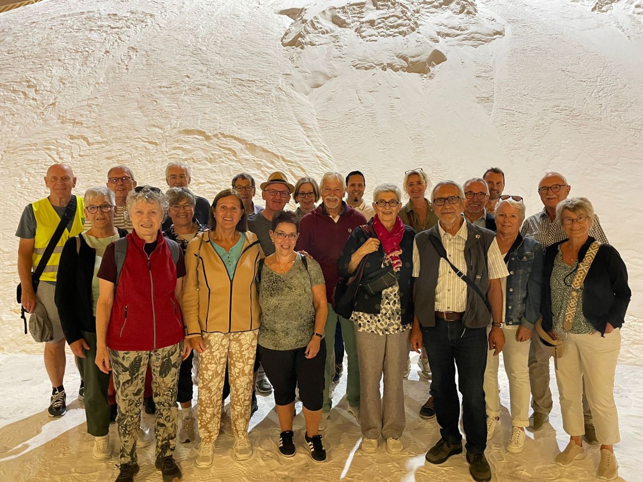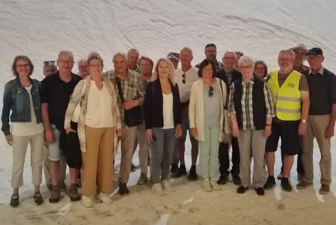 Am Samstag, 20. September 2025 trafen sich früh morgens, bei herrlichstem Herbstwetter, etwas mehr als 60 MTV Turner und Partnerinnen. Pünktlich um halb neun ging die Fahrt mit Zemp Carreisen los, Richtung Norden. Als wir in Möhlin AG eintrafen, wurden wir in drei Gruppen eingeteilt und so konnte die Führung bei den Salinen in Riburg starten. Was wir nun in den nächsten 1.5 Stunden über das „weisse Gold“ Salz erfuhren, war sehr spannend und wir wissen nun – eigentlich gehören die Salinen auch uns (Eigentum aller Kantone). Zudem ist erstaunlich, wie früher die Gewinnung stattfand und für was Salz alles verwendet wird – auch hat uns die Lagerung des Streusalz in den riesigen Holzdomen erstaunt.